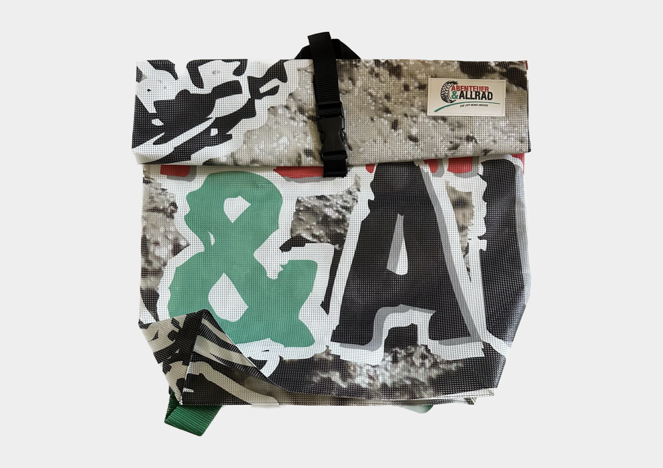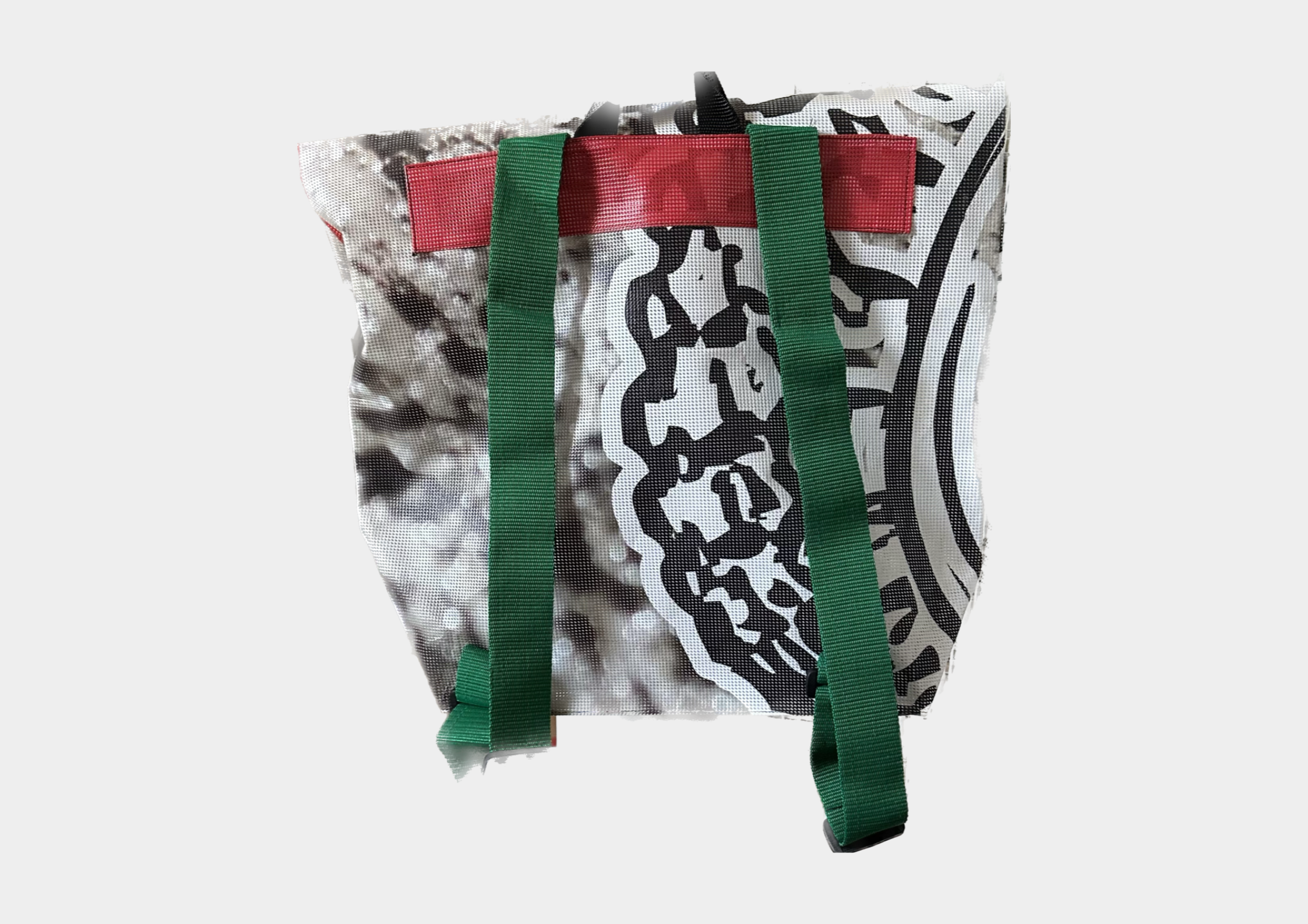 Upcycling-Rucksack aus Mesh-Gewebe (Messe-Werbebanner) mit Innenfach